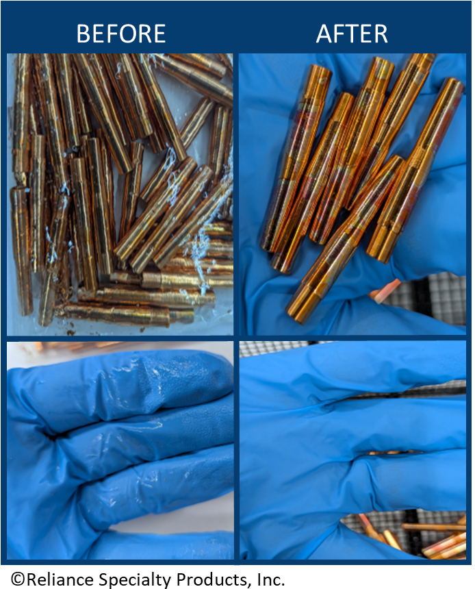 A batch of 50 machined brass parts was sent to Reliance for test cleaning.