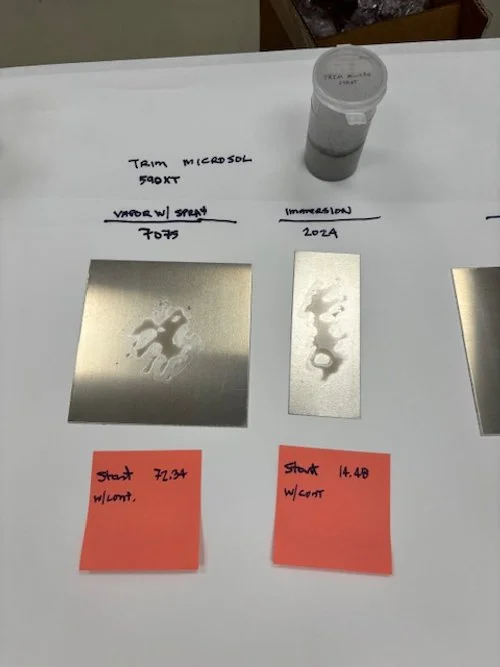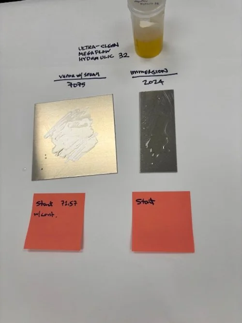 In this case the aerospace client is interested in evaluating the effectiveness of the AeroTron-AV-5408 to replace the nPB solvent that they are currently using in their vapor degreaser.