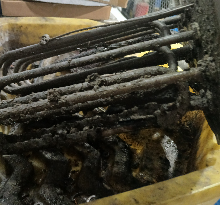 Dirty heating elements covered in grease.
